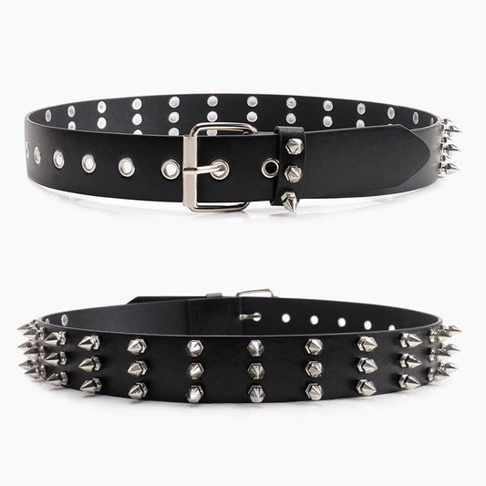 Three-row pointed bead rivet women's belt
