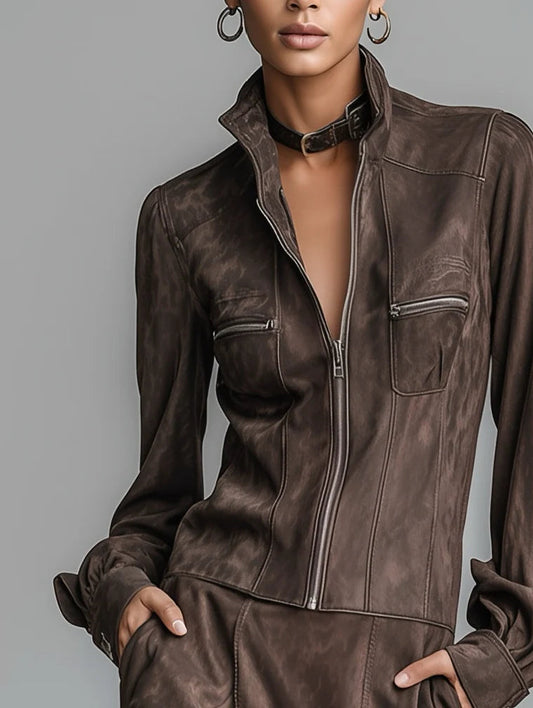 Suede Casual Retro Fashion Two-Piece Set