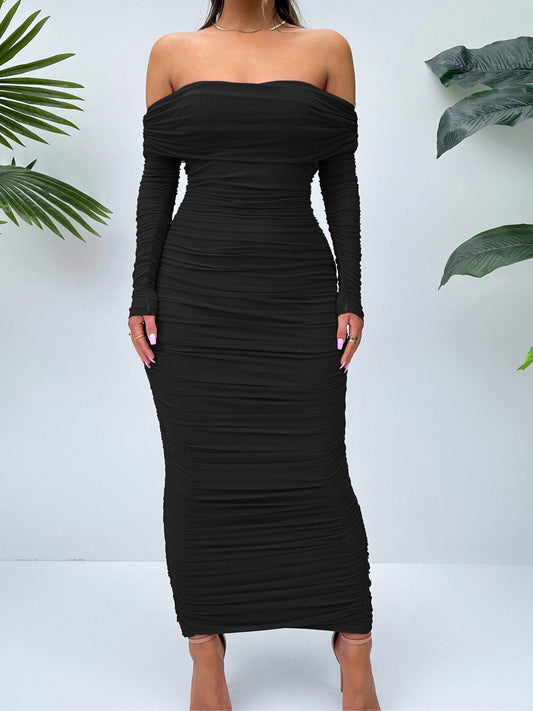 Temperament V-neck Long-sleeved Waist Slim Midi Dress