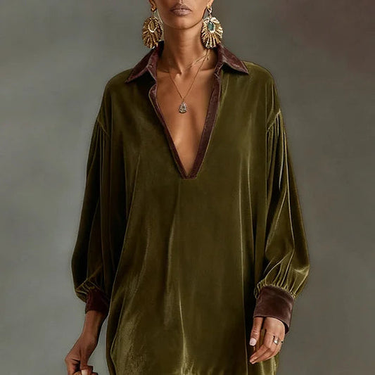 Retro Velvet Loose Casual V-neck Tassel Dress