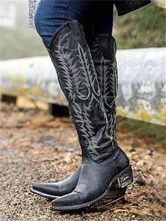 Vintage Western Cowboy Embroidered Knee-High Boots