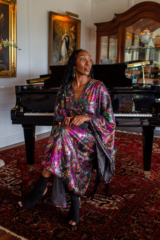 Retro Velvet Loose Casual V-neck Tassel Dress