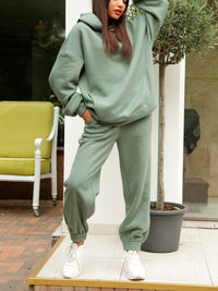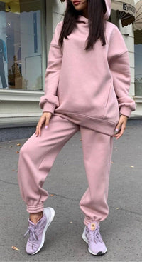 Fashionable solid color hooded sweatshirt casual two-piece suit